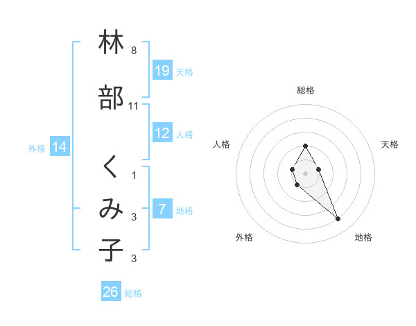 林部 くみ子さんの総格は26画の2点!