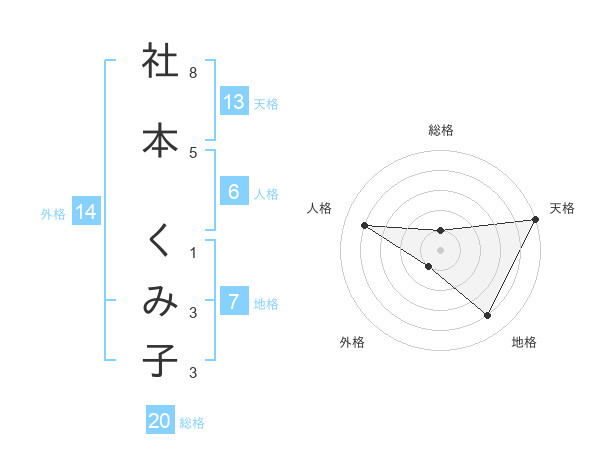 社本 くみ子さんの天格は13画の5点!