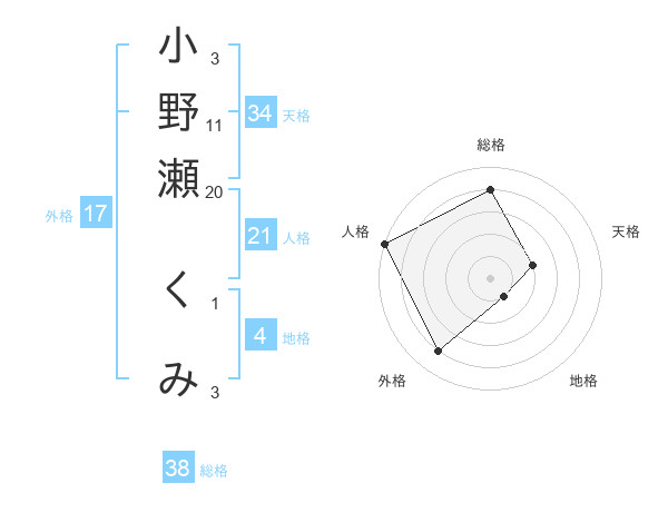 小野瀬 くみさんを姓名の画数から五運を鑑定