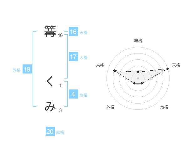 篝 くみさんの天格は16画の5点!