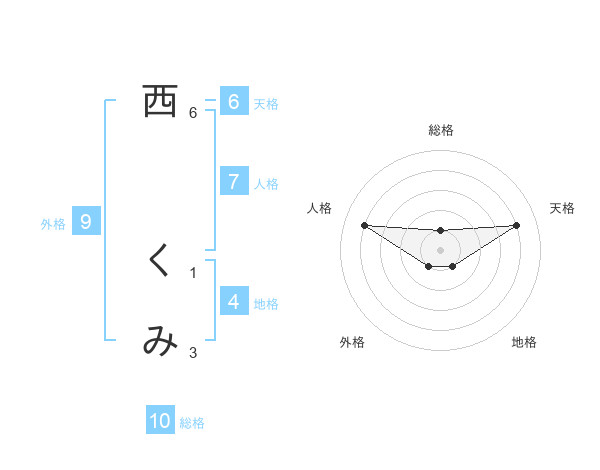 西 くみさんの総格は10画の1点!