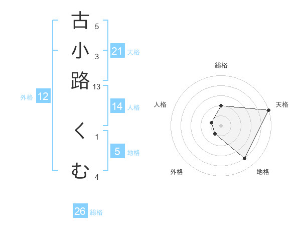古小路 くむさんの天格は21画の5点!