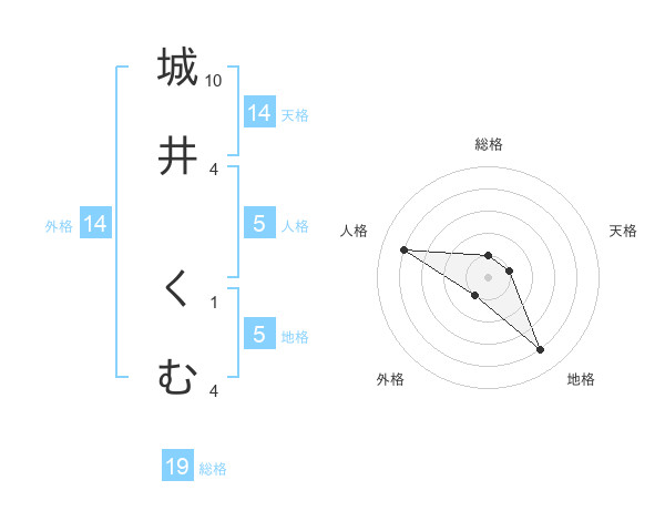 城井 くむさんの地格は5画の4点!