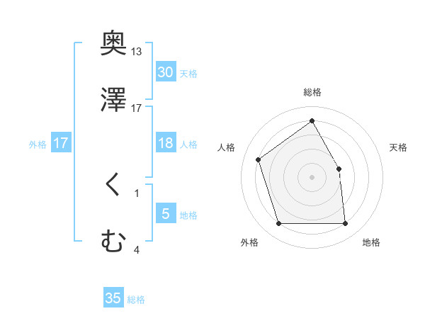 奥澤 くむさんを姓名の画数から五運を鑑定