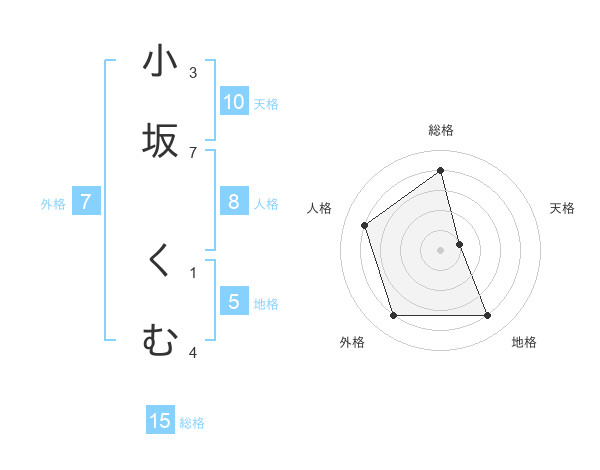 小坂 くむさんの総格は15画の4点!