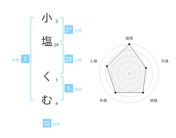 小塩 くむさんの総格は32画の5点!