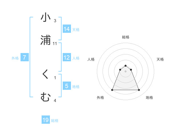 小浦 くむさんの地格は5画の4点!