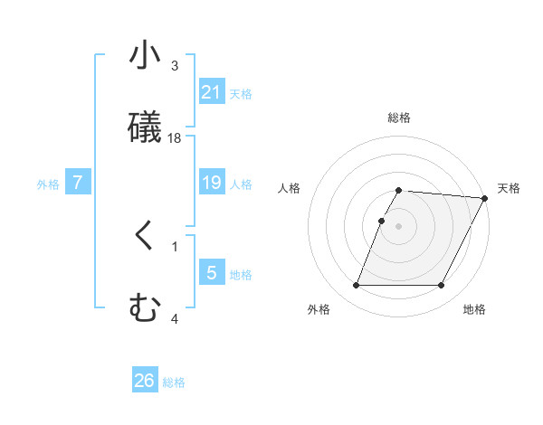 小礒 くむさんの天格は21画の5点!