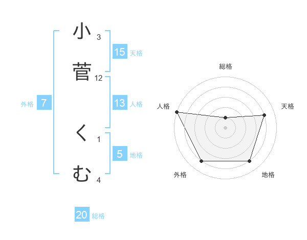 小菅 くむさんの総格は20画の1点!