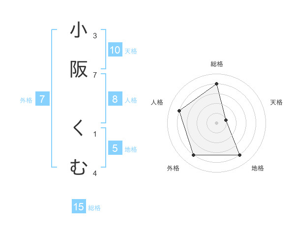 小阪 くむさんの地格は5画の4点!