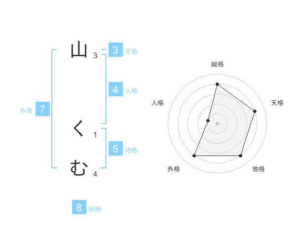 山 くむさんの外格は7画の4点!