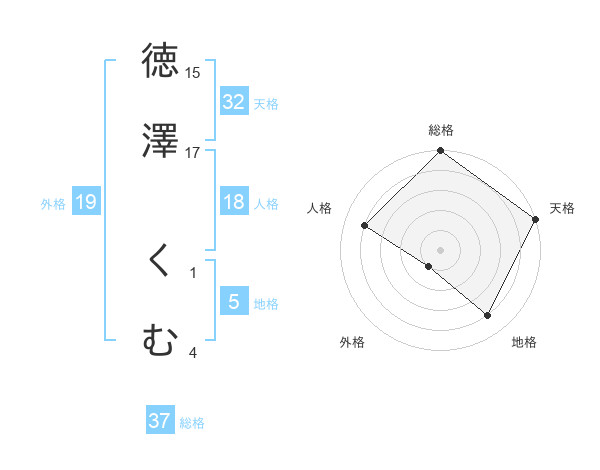 徳澤 くむさんを姓名の画数から五運を鑑定