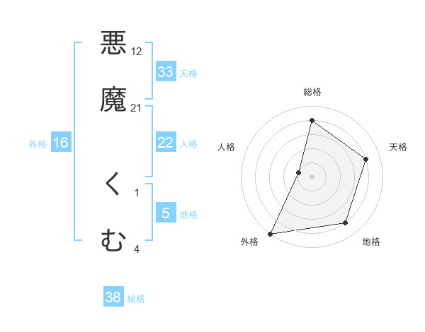 悪魔 くむさんの外格は16画の5点!