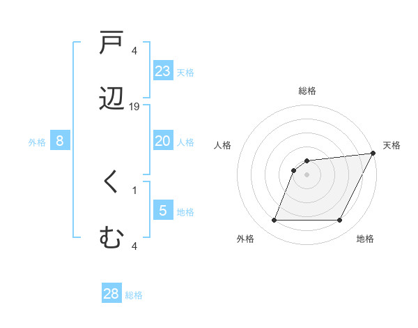 戸辺 くむさんを姓名の画数から五運を鑑定