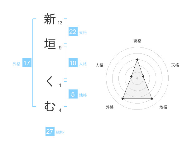 新垣 くむさんの外格は17画の4点!