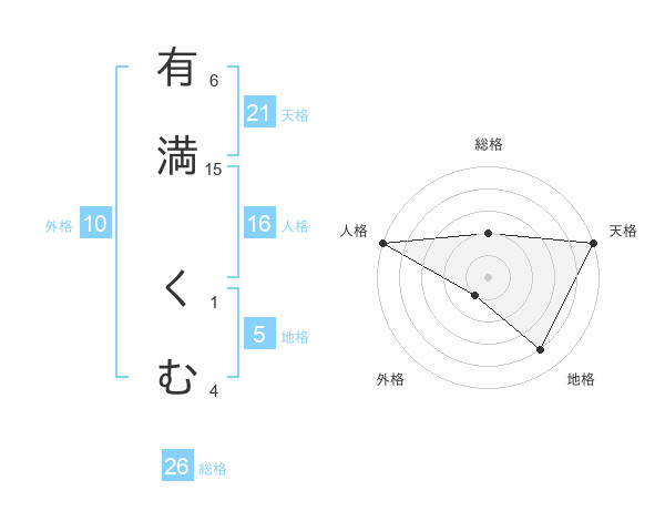 有満 くむさんの総格は26画の2点!