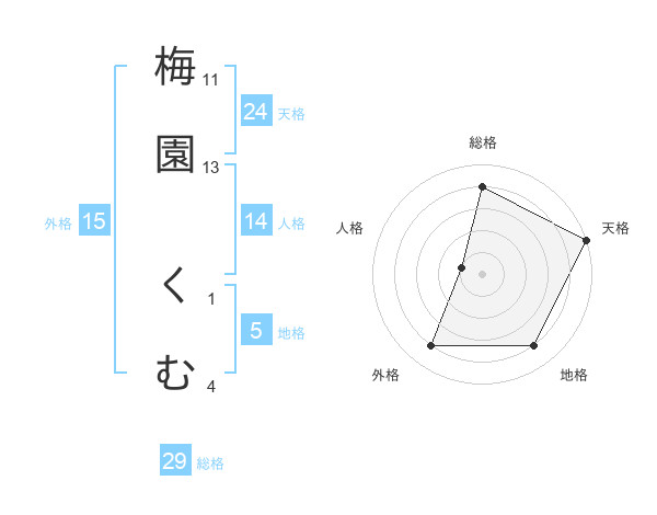 梅園 くむさんの総格は29画の4点!