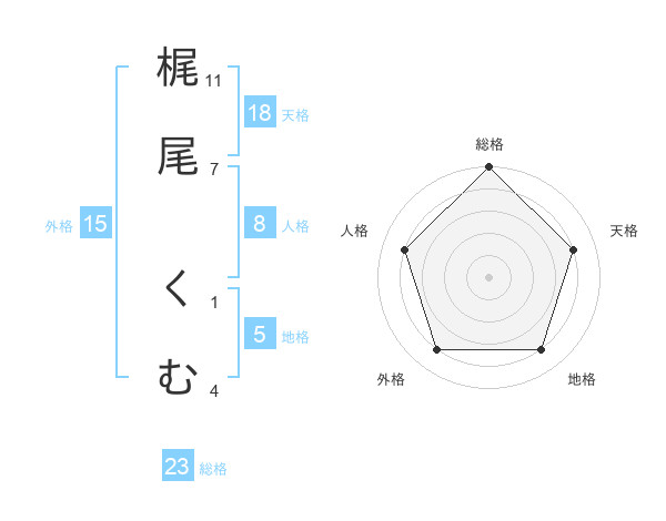 梶尾 くむさんの総格は23画の5点!