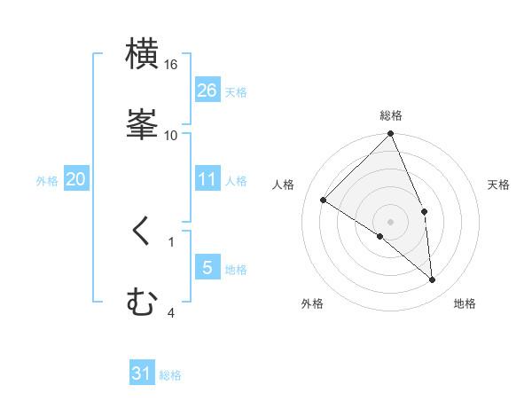 横峯 くむさんの総格は31画の5点!