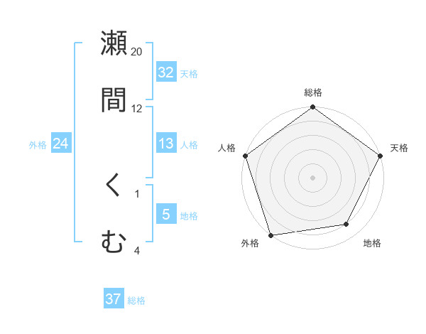瀬間 くむさんを姓名の画数から五運を鑑定