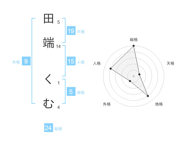 田端 くむさんの総格は24画の5点!