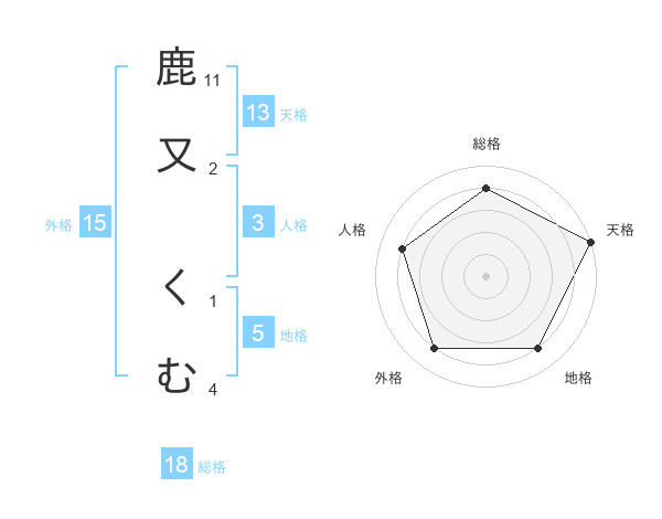鹿又 くむさんの天格は13画の5点!