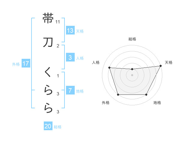 帯刀 くららさんを姓名の画数から五運を鑑定