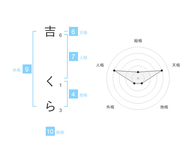 吉 くらさんの天格は6画の4点!