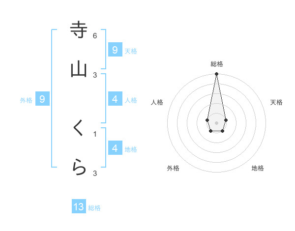 寺山 くらさんの総格は13画の5点!