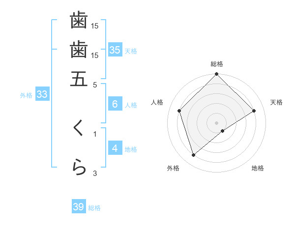 歯歯五 くらさんを姓名の画数から五運を鑑定