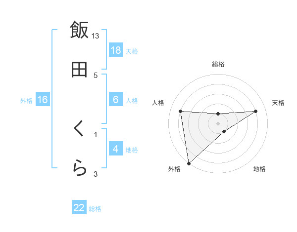 飯田 くらさんの外格は16画の5点!