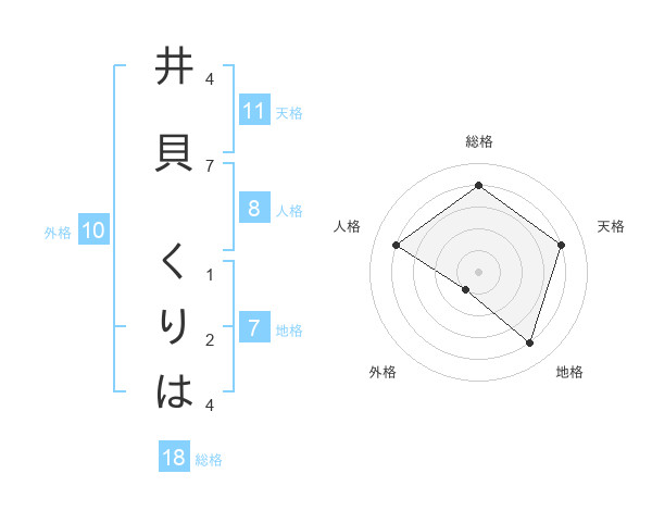 井貝 くりはさんの天格は11画の4点!