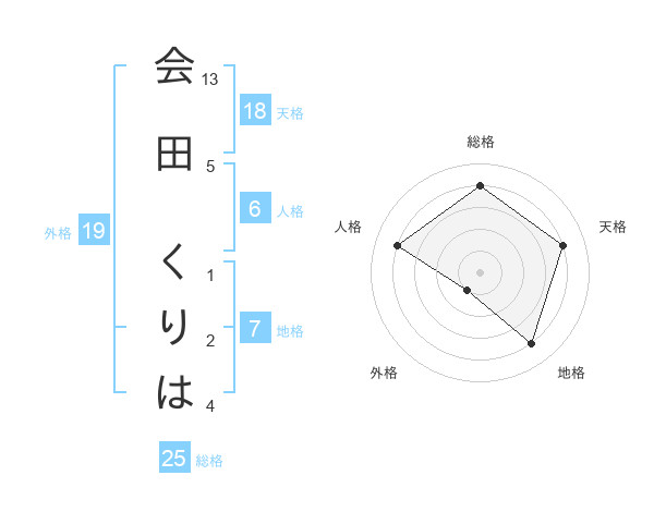 会田 くりはさんの総格は25画の4点!