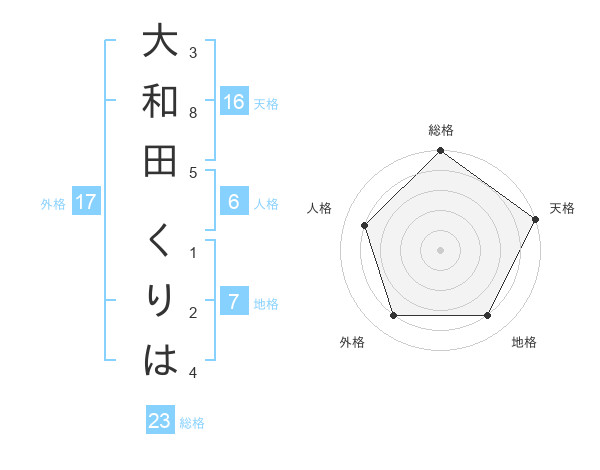 大和田 くりはさんを姓名の画数から五運を鑑定