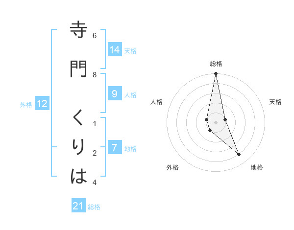 寺門 くりはさんの総格は21画の5点!
