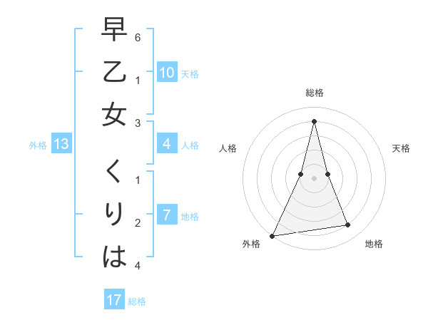 早乙女 くりはさんを姓名の画数から五運を鑑定