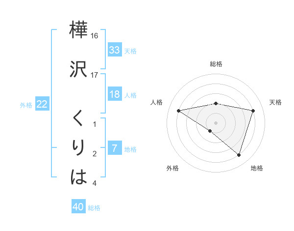 樺沢 くりはさんの天格は33画の4点!