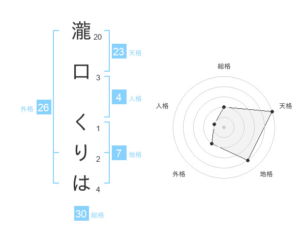 瀧口 くりはさんを姓名の画数から五運を鑑定