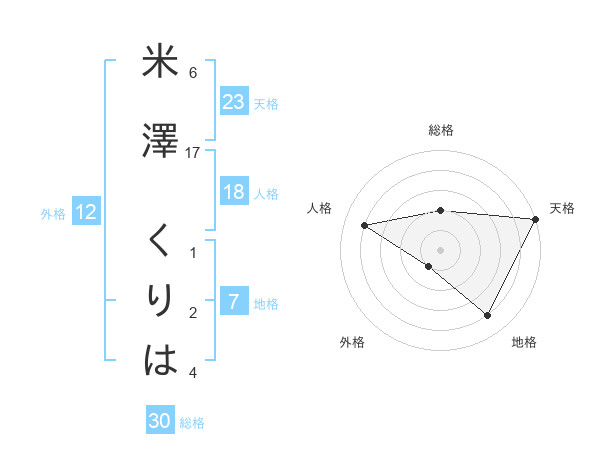米澤 くりはさんを姓名の画数から五運を鑑定
