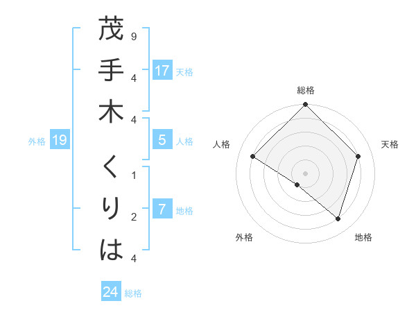 茂手木 くりはさんの総格は24画の5点