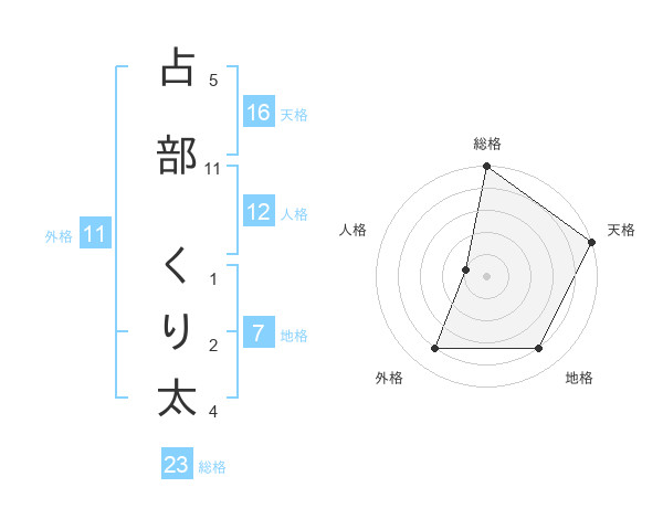 本サイトの鑑定結果の正当性は保証しません。鑑定結果は参考程度にお読みください。実際の名づけにご利用される場合は、姓名判断についてご自身でよくお調べください。
