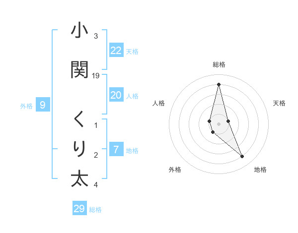 小関 くり太さんの総格は29画の4点!