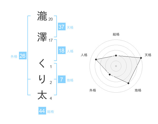 瀧澤 くり太さんを姓名の画数から五運を鑑定