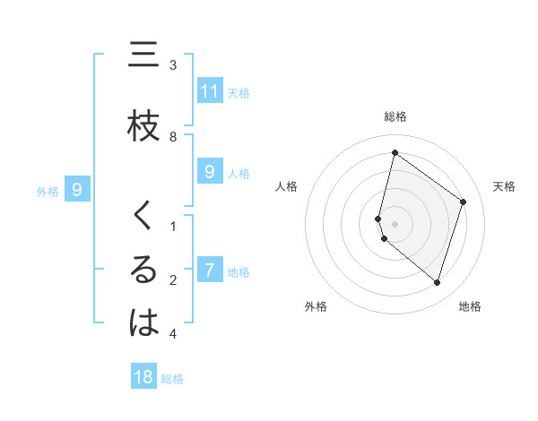 三枝 くるはさんを姓名の画数から五運を鑑定