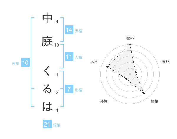 中庭 くるはさんを姓名の画数から五運を鑑定