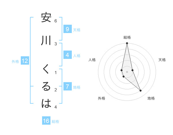 安川 くるはさんの総格は16画の5点!