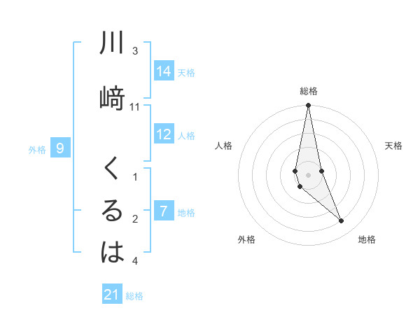 川﨑 くるはさんを姓名の画数から五運を鑑定