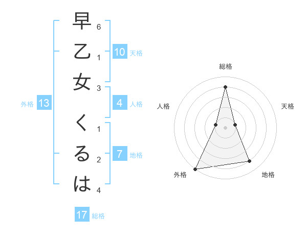 早乙女 くるはさんを姓名の画数から五運を鑑定