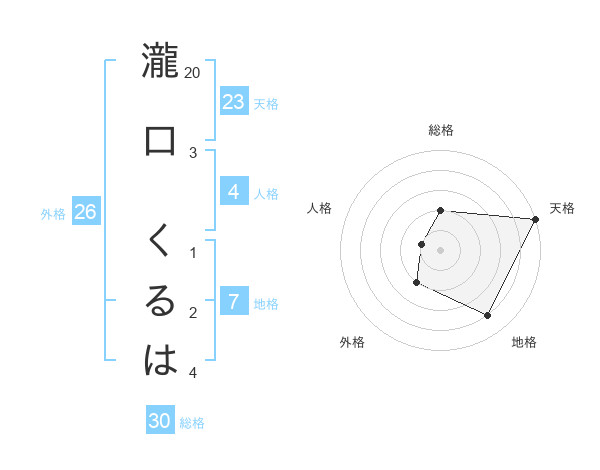 瀧口 くるはさんの天格は23画の5点!