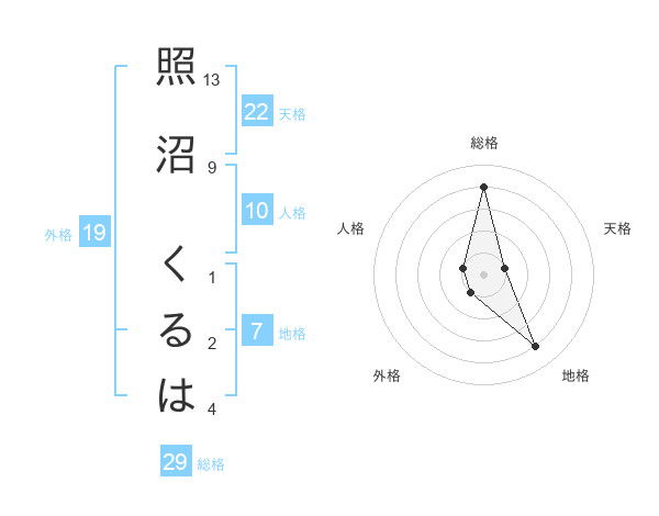 照沼 くるはさんを姓名の画数から五運を鑑定